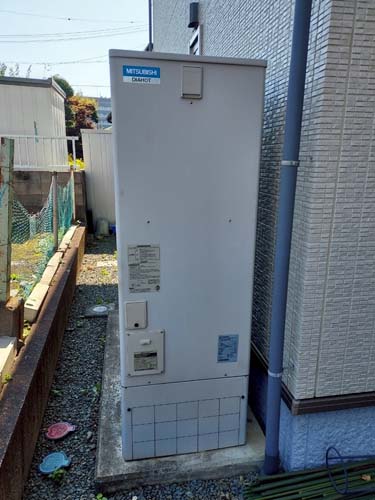 渋川市石原 三菱電機自然冷媒CO2ヒートポンプ給湯機 貯湯タンクユニットSRT-HPTK37W5→パナソニック家庭用ヒートポンプ給湯機 ヒートポンプユニットHE-PLS45L エコキュート交換工事