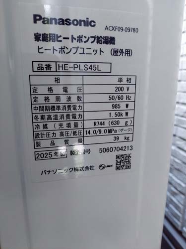 渋川市石原 パナソニック家庭用ヒートポンプ給湯機 ヒートポンプユニットHE-PLS45L エコキュート交換工事